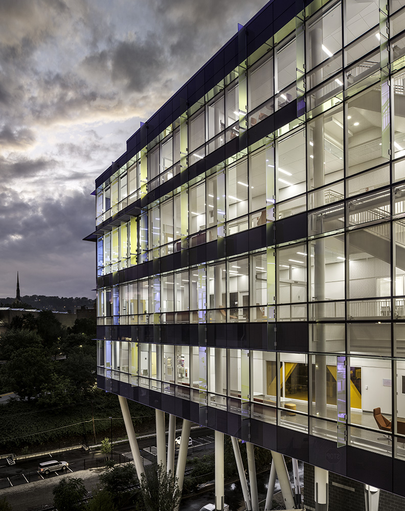 The energy intensive wet labs and nanotechnology research facilities comprise over half Scott Hall’s annual energy consumption. Reliable high-performance mechanical systems, management and occupancy controls, and inventive design strategies for high use spaces significantly reduced energy consumption and helped Scott Hall achieve LEED Gold certification.