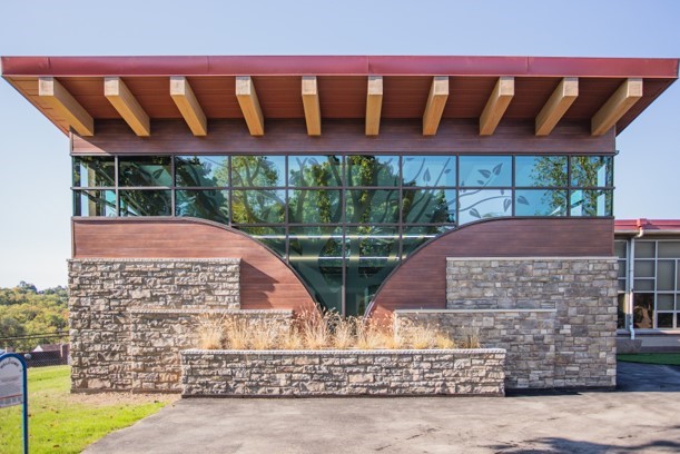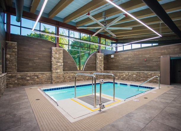 Pittsburgh Pioneer Aquatic Therapy Pool, which provides specialized aquatic therapy to meet the needs of medically fragile children in the PPS District, is the most recent example of sustainable design, incorporating LED fixtures, lighting sensors, a white EPDM roof to lessen heat island effects, and a rainwater system to slow runoff. With the capacity to accommodate up to four individuals at a time, it stands as one of only three such facilities in the region—and the only one offered by a public school.