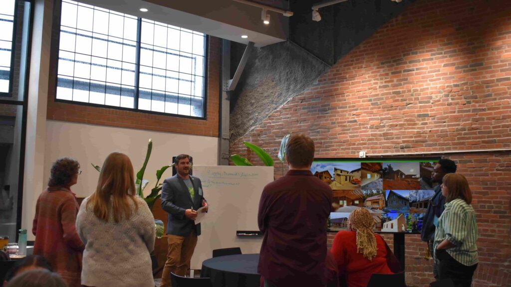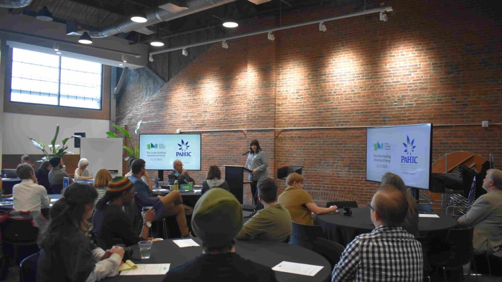 So, in the fall of 2023, more than 60 people gathered with GBA at the Roundhouse to learn about the green building potential of hemp: people representing construction, design, consulting, engineering, ownership, and more. Thanks to a grant from the Pennsylvania Department of Agriculture (PDA), we had the opportunity to learn from half a dozen of our region’s experts in hemp production, industry, construction, and research.